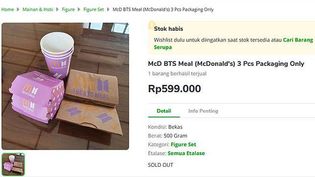 Nugget mcd x bts berbentuk among us terjual rp 1,4 miliar di ebay.